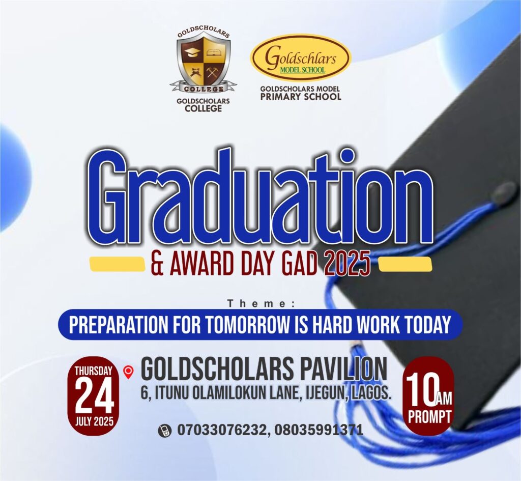 Greetings Passionate Educators of Team 2425. Welcome to Week 12. Today is 14th July 2025 and it is 10 days to our Graduation and Award Day GAD 2025. The GAD 2025 will hold on Thursday 24th July 2025 at our Goldscholars Pavilion, 6 Itunu Olamilokun Lane, Ijegun Lagos as from 10 am.